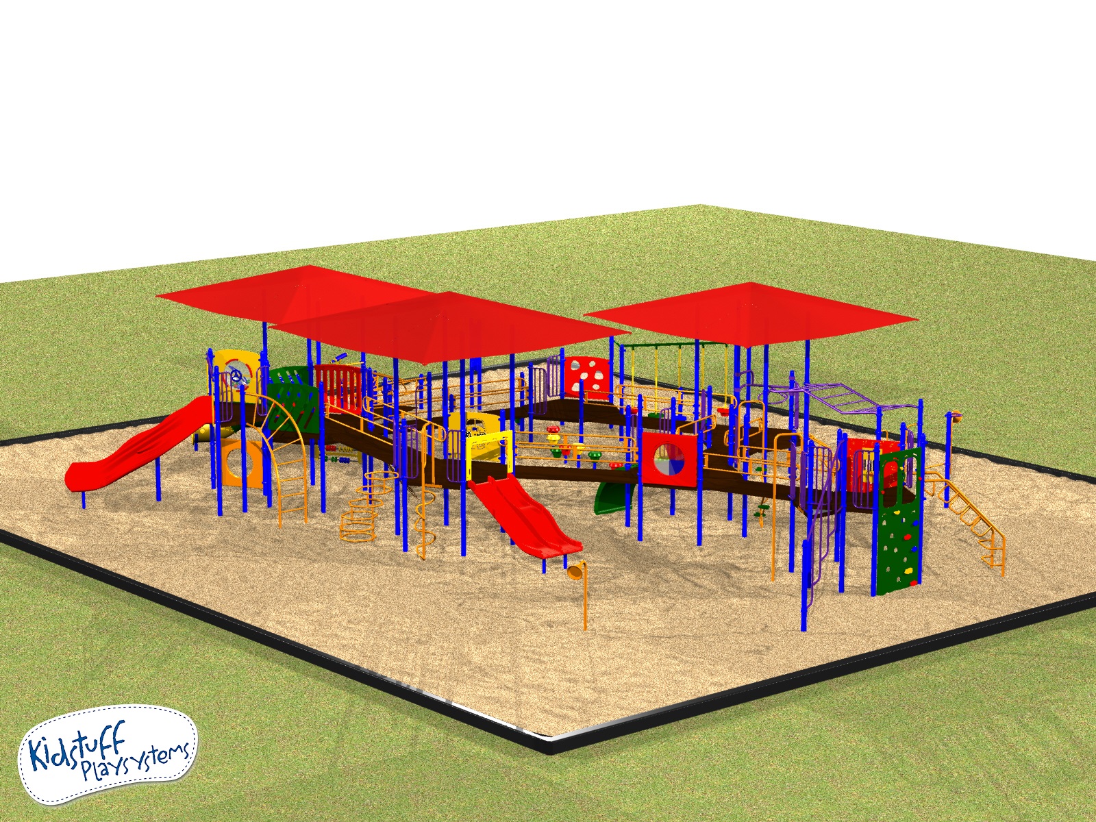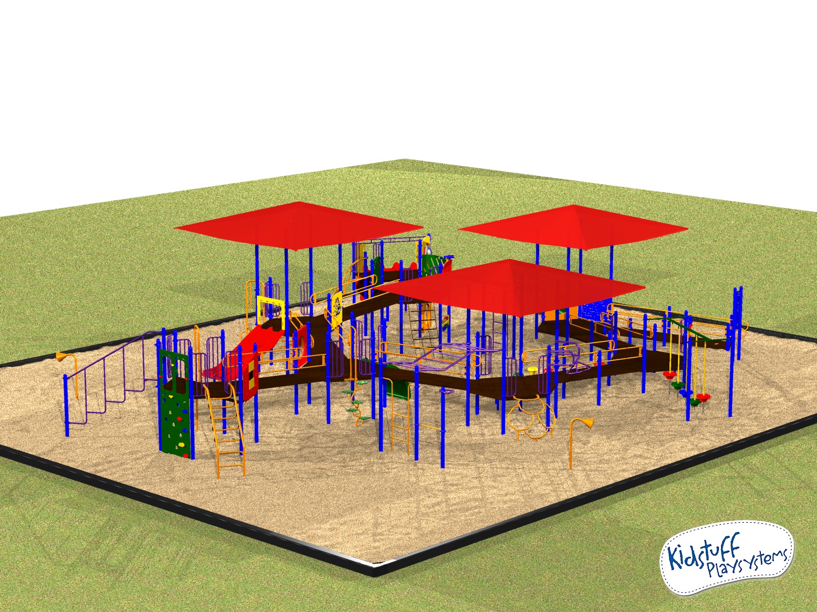 #7839-02SS is huge! With wheelchair ramps, climbers, panels, overhead ladders, tons of slides and 3 built-in 18ft overhead shades, Playsystem #7839-02SS accommodates over 120 children ages 5-12, of all abilities.